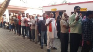 विधायक रमाशंकर सिंह पटेल (पूर्व राज्य मंत्री, उत्तर प्रदेश सरकार, विधायक मड़िहान विधानसभा) ने लाइन में खड़े हो कर अपने बूथ गोल्हनपुर में वोट किया.