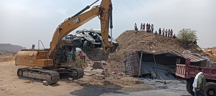 मिर्जापुर। उत्तर प्रदेश के मिर्जापुर जिले के अहरौरा थाना क्षेत्र में वाराणसी-शक्तिनगर हाईवे पर एक दर्दनाक हादसे में चार की मौत हो गई है, जबकि कुछ लोग घायल होने बताई जा रहे हैं। घटना के बाद मौके पर जहां अफ़रा-तफ़री का माहौल बन गया था, वहीं मलवे में फंसे लोगों को बाहर निकालने में पुलिस को भी काफी मशक्कत करनी पड़ी है, जिसका मंजर देख लोगों की रूह कांप जा रही थी।