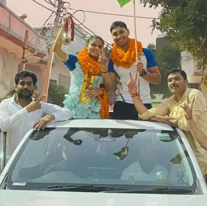 मोदीनगर: पैरिस पैरा ओलंपिक 2024 में हमारे मोदीनगर की बेटी सिमरन शर्मा ने 200 मीटर T12 कैटेगरी में कांस्य पदक जीतकर पूरे देश का मान बढ़ाया है। इस अद्भुत उपलब्धि के लिए गाँव सीकरी खुर्द में सिमरन शर्मा और उनके कोच एवं पति गजेंद्र सिंह का भव्य स्वागत किया गया।