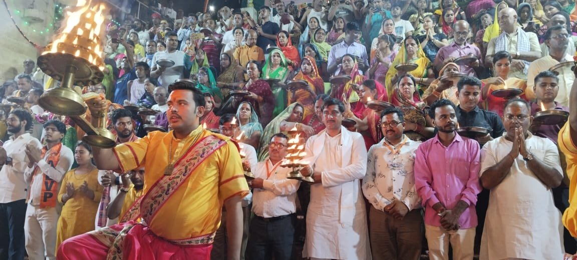 नवरात्रि के दूसरे दिन विन्ध्याचल में मां विंध्यवासिनी पक्का घाट पर विन्ध्य विकास परिषद के तत्वावधान में संचालित महा गंगा आरती में नगर पालिका अध्यक्ष श्याम सुंदर केसरी मुख्य अतिथि के रूप में पहुंचे।