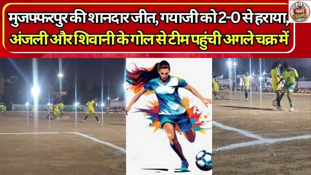 पहले हाफ में ही मुजफ्फरपुर ने आक्रामक रुख अपनाया। 16वें मिनट में जर्सी नंबर 06 की खिलाड़ी अंजली कुमारी ने शानदार गोल कर टीम को बढ़त दिलाई। इसके बाद 23वें मिनट में जर्सी नंबर 08 की शिवानी कुमारी ने दूसरा गोल दागकर स्कोर 2-0 कर दिया।