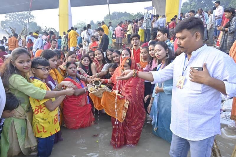पटना: नवंबर सामाजिक-सांस्कृतिक संस्था ‘नई दिशा परिवार ने आज महवीर घाट पिलर संख्या 147 के समीप उगते हुए सूर्य को अर्घ्य अर्पित किया। दूसरा अर्घ्य अर्पित करने के बाद नयी दिशा परिवार की 51 छठव्रती महिलाओं का 36 घंटे का निराहार व्रत समाप्त हुआ और उसके बाद ही व्रतधारियों ने अन्न ग्रहण किया। इस अवसर पर समाजसेवी और संस्था के संरक्षक कमलनयन श्रीवास्तव, मुख्य संरक्षक राजेश बल्लभ (मुन्ना यादव) सचिव राजेश राज,मनोज गुप्ता सहित अन्य गण-मान्य लोगों मौजूद रहे।