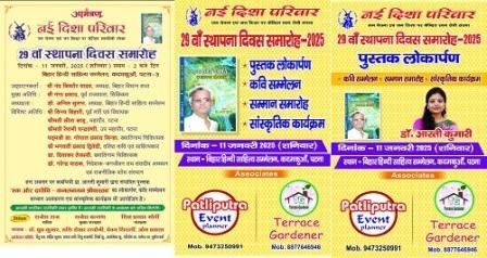 पटना: जन चेतना और जन शिक्षा के क्षेत्र में कार्यरत स्वयंसेवी संस्था नयी दिशा परिवार का 29वां स्थापना दिवस समारोह 11 जनवरी को हिंदी साहित्य सम्मेलन, कदमकुंआ में दोपहर दो बजे आयोजित किया जाएगा।