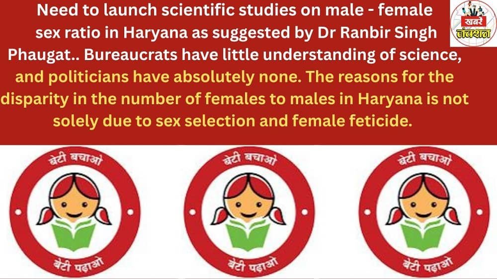 Need to launch scientific studies on male – female sex ratio in Haryana as suggested by Dr Ranbir Singh Phaugat.. Bureaucrats have little understanding of science, and politicians have absolutely none. The reasons for the disparity in the number of females to males in Haryana is not solely due to sex selection and female feticide