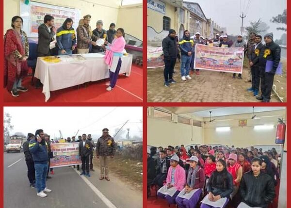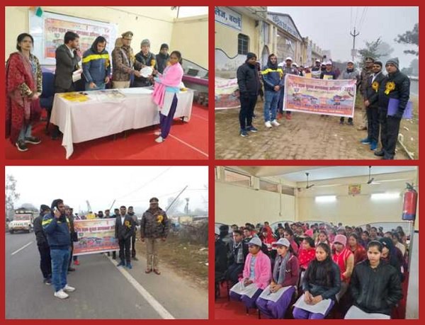 बदायूँ : नेहरू युवा केन्द्र बदायूं के युवा कार्यक्रम एवं खेल मंत्रालय भारत सरकार के तत्वावधान में लेखा एवं कार्यक्रम पर्यवेक्षक संजीव कुमार श्रीवास्तव के नेतृत्व में नेहरू युवा विकास समिति पसेई के सहयोग से चंद्रिका देवी इंटर कॉलेज से बहेड़ी मोड तक सड़क सुरक्षा जागरूकता रैली का आयोजन किया गया जिसके अंतर्गत सड़क सुरक्षा से सम्बंधित नारों आदि के माध्यम से आमजन को जागरूक किया गया व समीप की जगहों पर विभिन्न माई भारत स्वयंसेवको द्वारा सड़क सुरक्षा सप्ताह अंतर्गत जागरूकता अभियान चलाया गया जिसके अंतर्गत राहगीरों को यातायात नियम पालन करने के सम्बंध में जागरूक किया गया।
