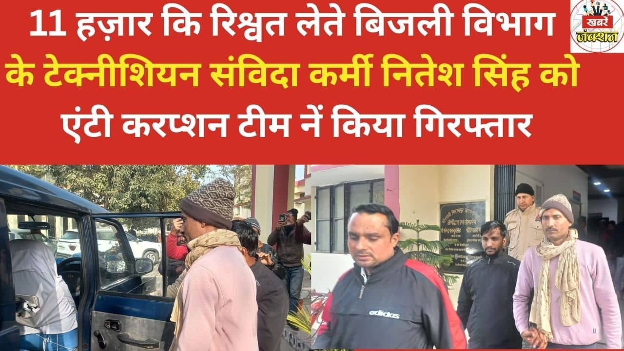 11 हज़ार कि रिश्वत लेते बिजली विभाग के टेक्नीशियन संविदा कर्मी नितेश सिंह को एंटी करप्शन टीम नें किया गिरफ्तार