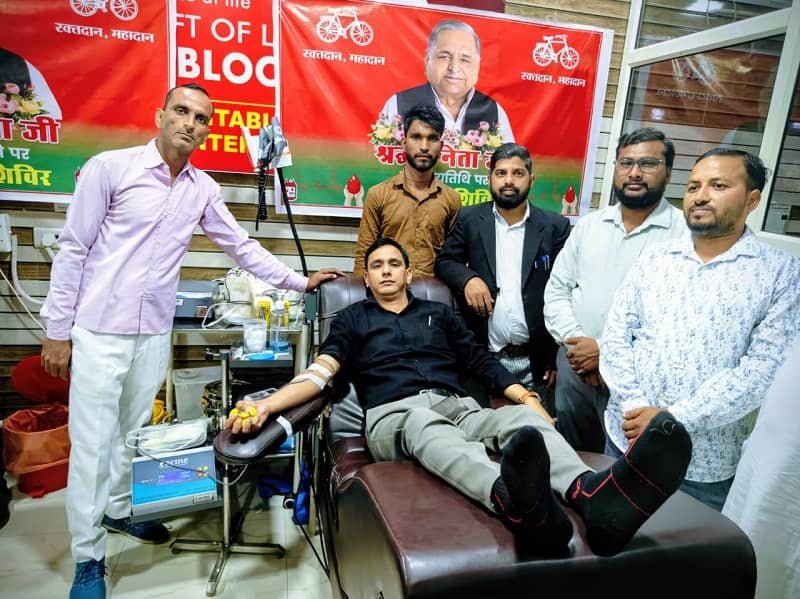 नेताजी की पुण्यतिथि पर समाजवादियों ने रक्तदान कर दिखाई सेवा भावना