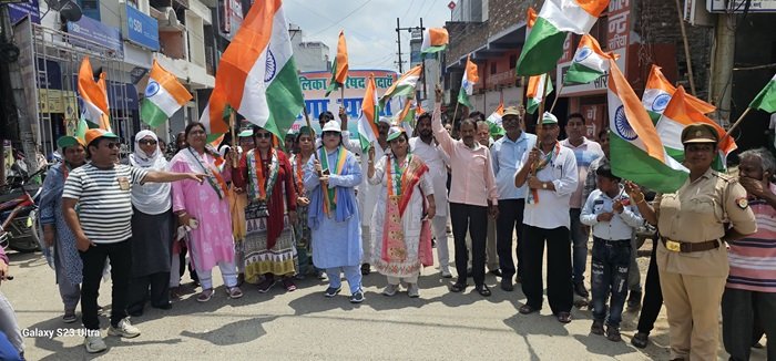 तिरंगा यात्रा में नगर पालिका कन्या इंटर कॉलेज की छात्राओं ने बढ़-चढ़कर भाग लिया और तिरंगे के सम्मान में जमकर नारेबाजी की।