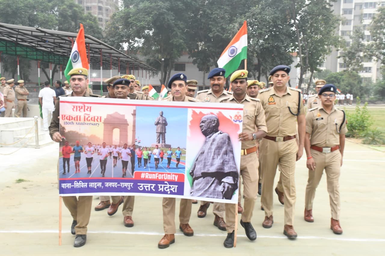 आज दिनांक 31 अक्टूबर, 2025; को लौह पुरुष, सरदार वल्लभ भाई पटेल जी के 150वीं जयंती “राष्ट्रीय एकता दिवस” के अवसर पर जिलाधिकारी, रामपुर एवं पुलिस अधीक्षक रामपुर द्वारा अपर पुलिस अधीक्षक रामपुर क्षेत्राधिकारी व अन्य अधिकारी/कर्मचारीगण के साथ “एक भारत, श्रेष्ठ भारत” की भावना को चरितार्थ करते हुए हमारे देश की एकता, अखंडता एवं सुरक्षा को संरक्षित और सशक्त करने के प्रति हमारी प्रतिबद्धता को सुदृढ़ करने के उद्देश्य से जनपद रामपुर में “Run For Unity” कार्यक्रम के तहत समय सुबह 07:15 बजे से हरी झण्डी दिखाते हुए रिजर्व पुलिस लाइन रामपुर से हंरी झंडी दिखाकर शुभारंभ किया गया ।