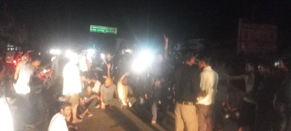 रोड पर बैठकर बिजली विभाग के खिलाफ की नारेबाजी