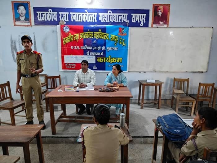 रामपुर। एसएससीडी शेड्यूल के अंतर्गत सीखो और कमाओ पीएम विश्वकर्म योजना कार्यक्रम महाविद्यालय में आयोजित किया गया। इस कार्यक्रम में सभी एनसीसी कैडेट्स ने बढ़चढ़कर भाग लिया । इस कार्यक्रम में एनसीसी प्रभारी डॉ बिजेंद्र सिंह एवं डॉ साक्षी त्यागी ने सीखो और कमाओ पीएम विश्वकर्मा योजना के संबंध में एनसीसी कैडेट्स को जानकारी प्रदान की उन्होंने बताया कि पीएम विश्वकर्म योजना के अंतर्गत शुरुआत में इन 18 तरह के कारीगरों एवं शिल्पकारो को इस योजना के लाभ के लिए चुना जाता है जैसे कवच बनाने वाला लोहार ,हथोड़ा और टूल किट निर्माता, ताला बनाने वाला, कुम्हार ,मूर्तिकार, आदि। लाभार्थी की न्यूनतम आयु 18 वर्ष होनी चाहिए ।लाभार्थी ने पिछले 5 वर्षों में पीएमईजीपी स्वनिधि एवं मुद्रा योजना के अंतर्गत लाभ न लिया हो ।