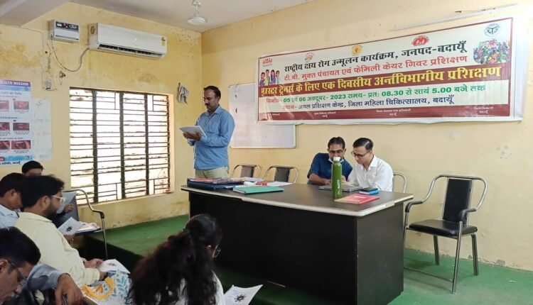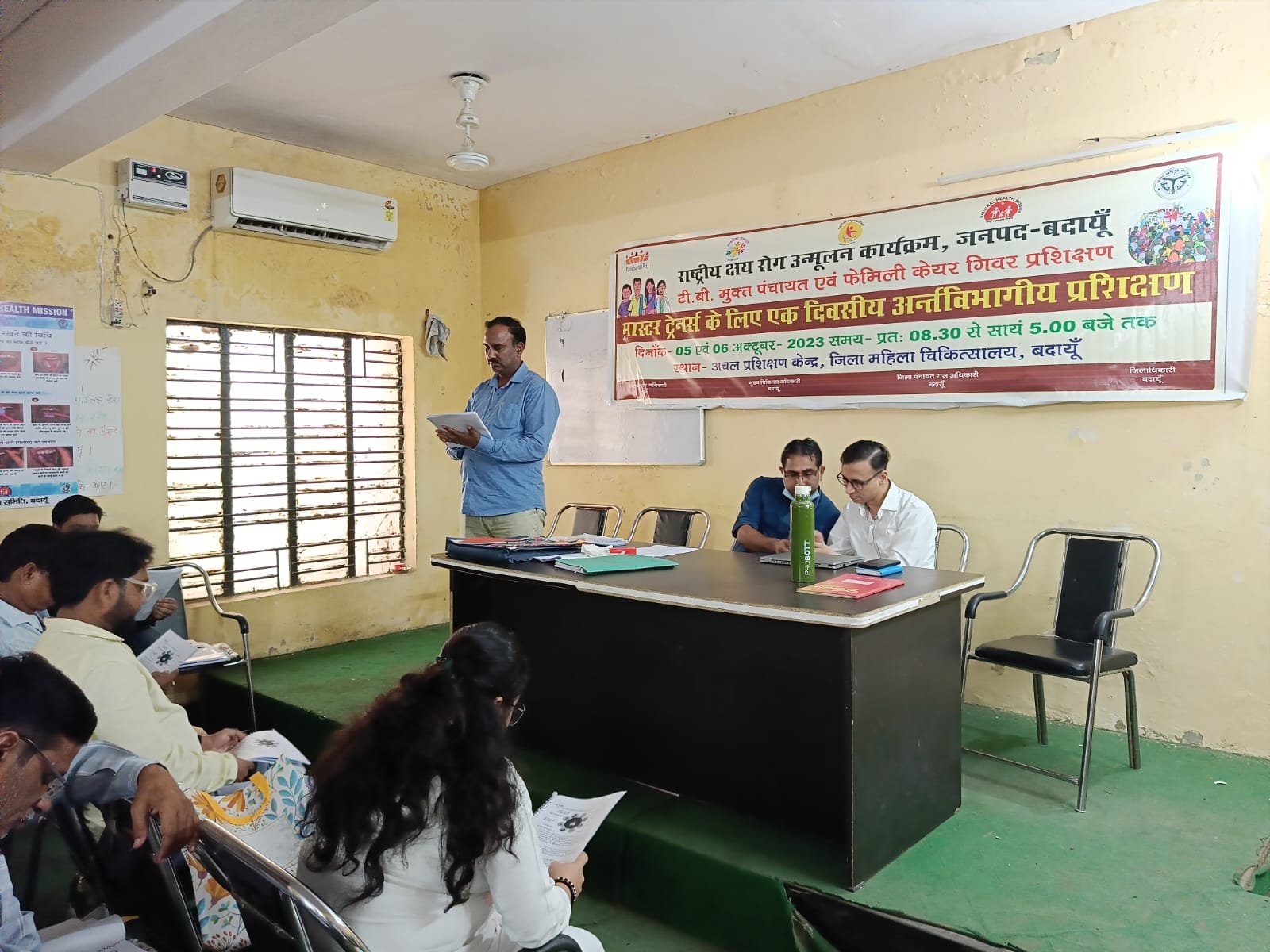 बदायूं। समाज से टी बी की बीमारी को भारत से 2025 तक समाप्त करना है,जिसके अंतर्गत आज जनपद बदायूं के 10 ब्लॉक के 30 प्रतिभागियों को प्रतिभाग करना था जिसमे 2 प्रतिभागी स्वास्थ्य विभाग एवं एक प्रतिभागी पंचायत विभाग से लिया गया है प्रशिक्षण अचल प्रशिक्षण केद्र जिला महिला चिकित्सालय बदायूं में हर ब्लॉक से चयनित 3 मास्टर ट्रेनर्स का प्रशिक्षण कराया गया।