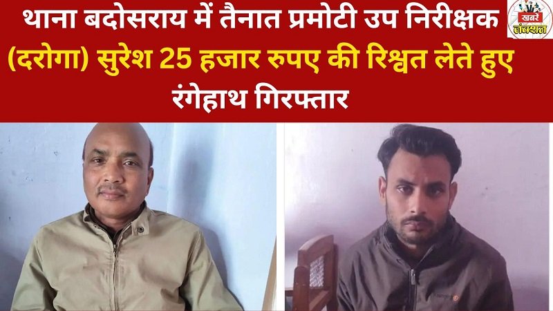 थाना बदोसराय में तैनात प्रमोटी उप निरीक्षक (दरोगा) सुरेश 25 हजार रुपए की रिश्वत लेते हुए रंगेहाथ गिरफ्तार
