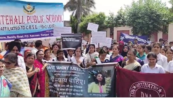 रामपुर: कोलकाता में जूनियर डॉक्टर के साथ हुए जघन्य अपराध और हत्या के विरोध में समाजसेवी खुशी जैन के नेतृत्व में रामपुर के कई स्कूल और समाजसेवी संस्थाओं ने आज गांधी समाधि पर प्रदर्शन किया। यह मार्च खारी कुआ कन्या इंटर कॉलेज से शुरू होकर गांधी समाधि पर समाप्त हुई।