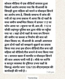 वायरल वीडियो में सिपाही द्वारा महिला को रोकते और मोबाइल छीनने की कोशिश करते हुए देखा जा सकता है। वहीं पुलिस का कहना है कि “मारपीट की बात असत्य है”। लेकिन अपने ही बयान में पुलिस ने यह स्वीकार किया कि सिपाही ने महिला को वीडियो बनाने से रोका था, जिससे सवाल खड़े हो रहे हैं।