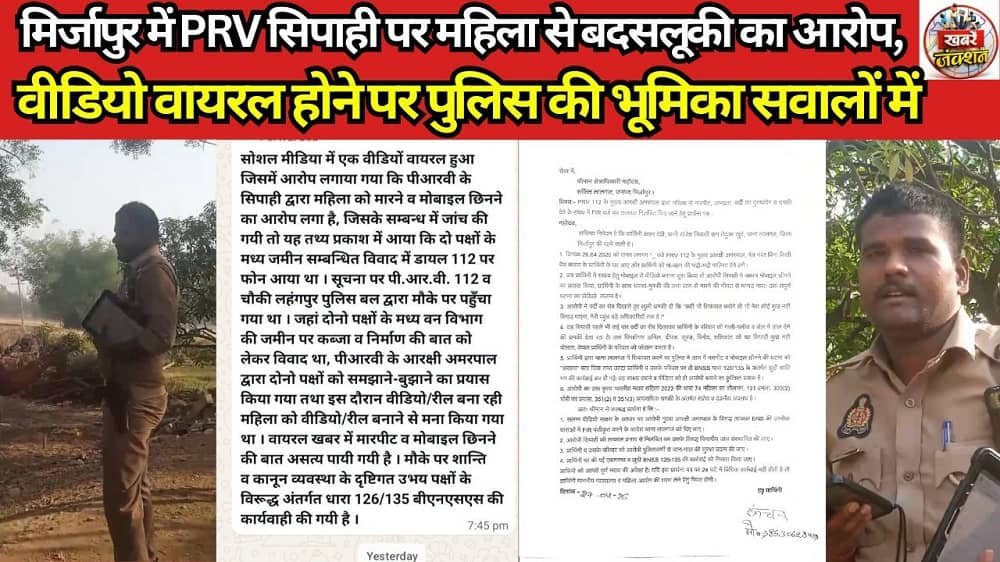 मिर्जापुर में PRV सिपाही पर महिला से बदसलूकी का आरोप, वीडियो वायरल होने पर पुलिस की भूमिका सवालों में