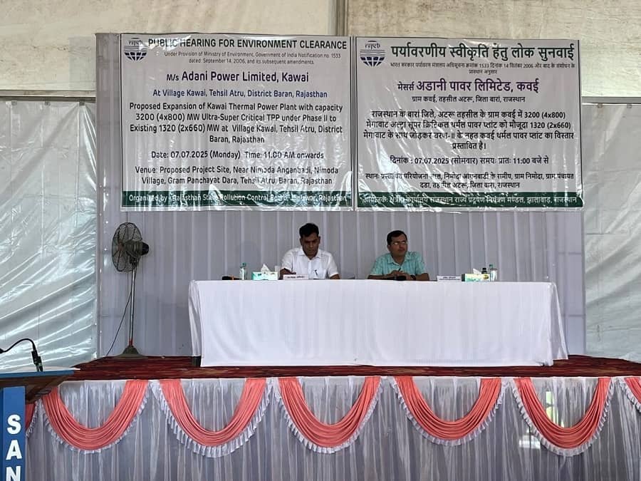 कवाई (अटरू), 7 जुलाई, 2025: बारां जिले के अटरू तहसील अंतर्गत ग्राम कवाई में प्रस्तावित 3200 (4×800) मेगावाट अल्ट्रा सुपर क्रिटिकल थर्मल पॉवर प्लांट के विस्तार को लेकर सोमवार को जनसुनवाई का सफल आयोजन किया गया। यह जनसुनवाई पर्यावरणीय स्वीकृति हेतु भारत सरकार पर्यावरण मंत्रालय की अधिसूचना क्रमांक 1533 दिनाँक 14 सितंबर, 2006 एवं उसके बाद के संशोधनों के प्रावधानों के अंतर्गत आयोजित की गई। इस परियोजना में पहले से संचालित 1320 (2×660) मेगावाट संयंत्र में क्षमता वृद्धि की जाएगी, जिसे चरण-॥ के तहत मेसर्स अदाणी पॉवर लिमिटेड द्वारा प्रस्तावित किया गया है।