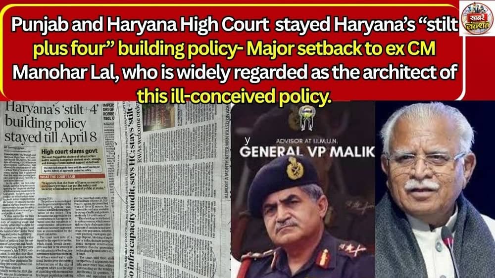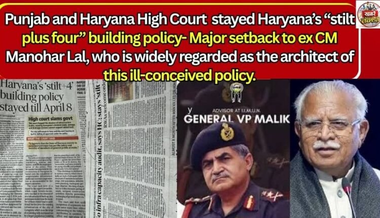 In a significant development, the Punjab and Haryana High Court has stayed Haryana’s “stilt plus four” building policy, delivering a major setback to former Chief Minister Manohar Lal, who is widely regarded as the architect of this ill-conceived policy, reportedly introduced under pressure from the builder lobby.