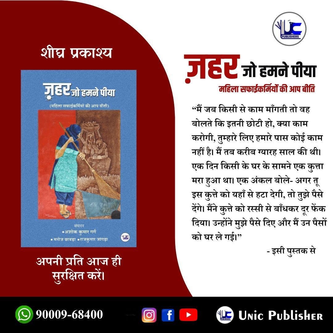 pustak sameeksha . Shighar parkashy.“ jahar jo hamne piya – mahila safai karmiyon ki aapbiti “ sampadan ,Ashok kumar Garg IAS,manoj Chabra or raj kumar Jangda.