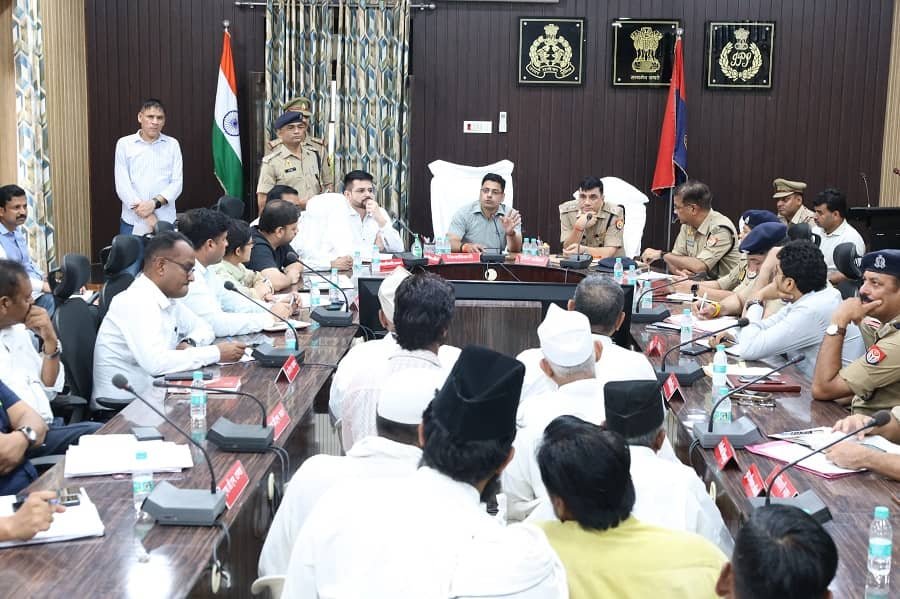 जिलाधिकारी जोगिंदर सिंह एवं पुलिस अधीक्षक श्री विद्यासागर मिश्र की उपस्थिति में पुलिस लाइन सभागार में मोहर्रम को लेकर पीस कमेटी की बैठक संपन्न हुई।