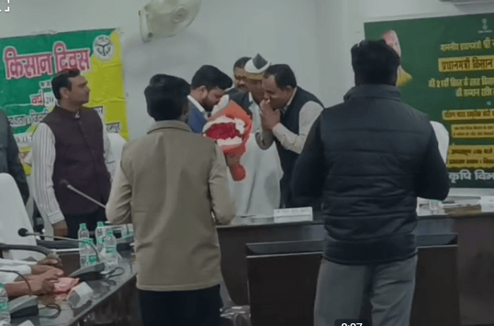 रामपुर। विकास भवन में आयोजित किसान दिवस कार्यक्रम के दौरान प्रदेश सरकार में मंत्री बलदेव सिंह ओलख का बुके भेंट कर जोरदार स्वागत किया गया। जिलाधिकारी अजय कुमार द्विवेदी ने मंत्री जी का स्वागत कर कार्यक्रम का शुभारंभ कराया।