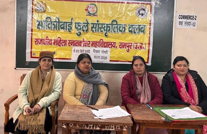 रामपुर। राजकीय महिला स्नातकोत्तर महाविद्यालय, रामपुर में भारत रत्न श्री अटल बिहारी वाजपेयी के जन्मोत्सव के अवसर पर सावित्रीबाई फुले सांस्कृतिक क्लब के तत्वावधान में एक विचार गोष्ठी का आयोजन किया गया।
