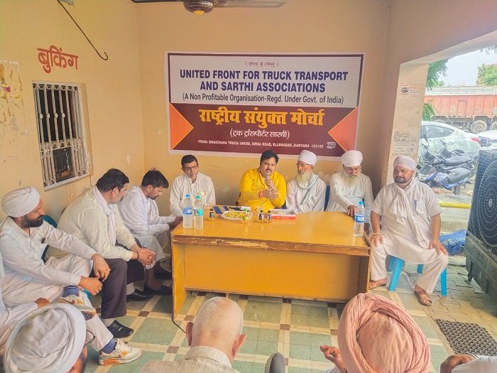 ऐलनाबाद, 28 जुलाई ( एम पी भार्गव ) शहर की सिरसा रोड पर स्थित भाईचारा ट्रक यूनियन के प्रांगण में आज ट्रक ऑपरेटरों व चालको की आवश्यक बैठक हुई। इस बैठक को यूनाइटेड फ्रंट फ़ॉर ट्रक ट्रांसपोर्ट एंड सारथी एसोसिएशन के तहत बने राष्ट्रीय संयुक्त मोर्चा के अध्यक्ष राजकुमार यादव ने संबोधित किया। उनके यहां पहुंचने पर ट्रक आपरेटर संघ के पदाधिकारियों ने उनको सिरोपा भेंट करके सम्मानित किया। अपने संबोधन में राष्ट्रीय संयुक्त मोर्चा के अध्यक्ष राजकुमार यादव ने कहा कि ट्रक ऑपरेटर हमारे देश की लाइफ लाइन माने जाते है लेकिन इसके बावजूद उन्हें ना तो उचित मान सम्मान मिलता और ना ही उचित पारिश्रमिक। बल्कि सरकारी तंत्र द्वारा उन्हें ना केवल नाजायज परेशान किया जाता है बल्कि उनकी जायज मांगों की ओर भी ध्यान नहीं दिया जाता। उन्होंने कहा कि सरकार उनकी मांगों को जल्द से जल्द माने और उन्हें उनका पूरा मान सम्मान और पारिश्रमिक देकर उन्हें नाजायज प्रताड़ित करना बंद करे ताकि गरीब ट्रक चालक अपना और अपने परिवार का भरण पोषण कर सके। उन्होंने सरकार से ट्रकों की बीमा राशि को मोबाइल के रिचार्ज की भांति किए जाने की मांग की ताकि जरूरत पड़ने पर ट्रक ऑपरेटर अपने ट्रक का बीमा करवाकर अपनी रोजी-रोटी कमा सके। उन्होंने समय समय सीमा पूरी कर चुके टोल नाको को बंद करने तथा सड़कों की खस्ता हालत को दुरुस्त करवाने की अपील की। उन्होंने कहा कि किसानों के पास ट्रैक्टर ट्रालियां केवल कृषि कार्यों के लिए उपयोग में लाई जानी चाहिए जबकि कुछ लोग इन ट्रैक्टर ट्रालियों को माल वहन के लिए उपयोग करते हैं जो कि गलत है। ऐसे ट्रैक्टर चालकों के खिलाफ कार्रवाई की जानी चाहिए। उन्होंने सभी ट्रक चालकों से आपसी भाईचारा व एकजुट बनाए रखने की अपील की ताकि समय आने पर सरकार से अपनी जायज मांगे बनवाई जा सके। इस अवसर पर यूनियन के  प्रधान कमलेश शर्मा व बृजलाल लोहिया, मैनेजर कुलदीप सिंह, महेंद्र सिंह बोघल, नानक सिंह संधू, गुरदेव सिंह भिंडर, सुखदेव सिंह शहीद, सुबासिंह सरां, गुरप्रीत सिंह सरां व मलकीत सिंह भिंडर के अलावा श्री जीवननगर, सिरसा व टिब्बी के ट्रक ऑपरेटर व चालक भी उपस्थित थे।