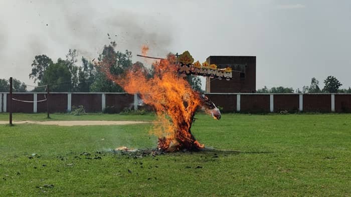जैसे ही बुराई के प्रतीक रावण का पुतला दहन हुआ, पूरा विद्यालय प्रांगण “जय श्री राम” के नारों से गूंज उठा।