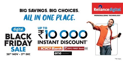 लखनऊ, 28 नवंबर, 2024: रिलायंस डिजिटल, ब्लैक फ्राइडे सेल लेकर आया है। 28 नवंबर से शुरू होकर 2 दिसंबर, 2024 तक रिलायंस डिजिटल, मायजियो स्टोर्स और reliancedigital.in पर ग्राहक को स्मार्टफोन, लैपटॉप, होम अप्लायंसेज जैसे इलेक्ट्रॉनिक्स आइटम्स पर ढेरों ऑफ़र मिलेंगे। इस साल की इस महासेल में ग्राहकों को ICICI बैंक, IDFC फर्स्ट बैंक और वनकार्ड के चुनिंदा डेबिट और क्रेडिट कार्ड पर 10,000 रुपये तक की छूट मिलेगी। फाइनेंस पार्टनर बजाज फिनसर्व और IDFC फर्स्ट बैंक से कंज्यूमर ड्यूरेबल लोन लेने वालों उपभोक्ताओं को 22,500 रुपये तक के कैशबैक भी मिलेंगे।