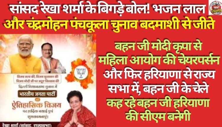 कांग्रेस नेता ने आगे कहा कि रेखा शर्मा को पहले राष्ट्रीय महिला आयोग की चेयरपर्सन और फिर हरियाणा से राज्यसभा सदस्य बनने में “ऊपरी कृपा” का लाभ मिला है। उन्होंने तंज कसते हुए यह भी कहा कि अब उनके समर्थक उन्हें हरियाणा का मुख्यमंत्री बनाने की बात कर रहे हैं।