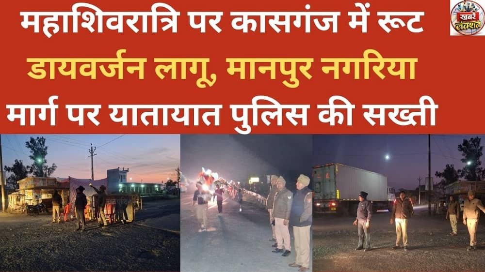 कासगंज: महाशिवरात्रि पर्व के दौरान कांवड़ियों की बढ़ती भीड़ को देखते हुए कासगंज यातायात पुलिस ने मानपुर नगरिया के दो पटरी रोड पर रूट डायवर्जन लागू कर दिया है। यह डायवर्जन 12 फरवरी 2026 को शाम 5:00 बजे से 15 फरवरी 2026 को शाम 5:00 बजे तक प्रभावी रहेगा।