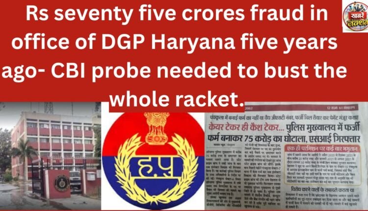 Rs seventy five crores fraud in office of DGP Haryana five years ago-CBI probe needed to bust the whole racket.