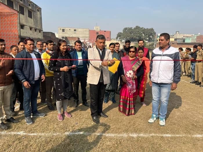 शुक्रवार को जेएस कॉलेज के मैदान पर आयोजित वार्षिक खेलकूद प्रतियोगिता का शुभारंभ कालेज प्रबंधक नितिन भटनागर एवं प्राचार्या डॉ स्वप्ना उप्रेती ने सयुंक्त रूप से फीता काटकर किया ।नितिन भटनागर ने कहा कि छात्र-छात्राओं को पढ़ाई के साथ-साथ खेलों में भी भाग लेना चाहिए। जिससे बौद्धिक विकास के साथ शारीरिक विकास भी होता है| खेलकूद प्रतियोगिता प्रभारी प्रोफेसर होशियार सिंह ने बताया कि बालक वर्ग की 100 मीटर दौड़ में अंकुश कुमार प्रथम,ललित द्वितीय, सोनू तृतीय, रहे| 200 मीटर दौड़ में अनुज शर्मा प्रथम, सचिन सोलंकी द्वितीय, बॉबी कुमार तृतीय रहे | 400 मीटर दौड़ में ऋतिक महावीर प्रथम, विकास द्वितीय,अनुज शर्मा तृतीय रहे | 800 मीटर दौड़ में सुशील प्रथम, मोहित सागर द्वितीय, ऋतिक मणि तृतीय रहे|. 1500 मीटर दौड़ में सुशील प्रथम,अनुज शर्मा द्वितीय और मोहित कुमार तृतीय स्थान पर रहे| वहीं 100 मीटर दौड़ बालिका वर्ग में साक्षी प्रथम , शिवानी भाटी द्वितीय और अंजलि तृतीय रही | 200 मीटर दौड़ में साक्षी प्रथम, निक्की द्वितीय और ज्योति तृतीय रही| 400 मीटर दौड़ में नेहा प्रथम, अंजलि द्वितीय और अंजलि तृतीय रही |