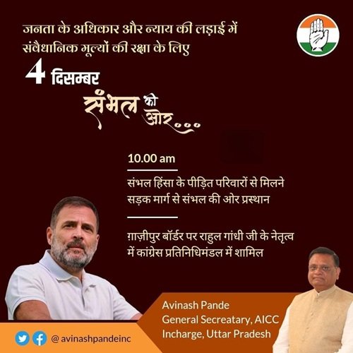 Sambhal DM wrote a letter to the officials of neighboring districts, appealing to stop Rahul Gandhiराहुल गांधी ने पहले ही घोषणा की थी कि वह किसी भी कीमत पर 5 दिसंबर को संभल पहुंचेंगे। इसके बाद, पार्टी के महासचिव और प्रभारी अविनाश पांडे ने भी यह स्पष्ट किया है कि राहुल गांधी सुबह 10 बजे अपने घर से रवाना होंगे और संभल के लिए सीधे जाएंगे।