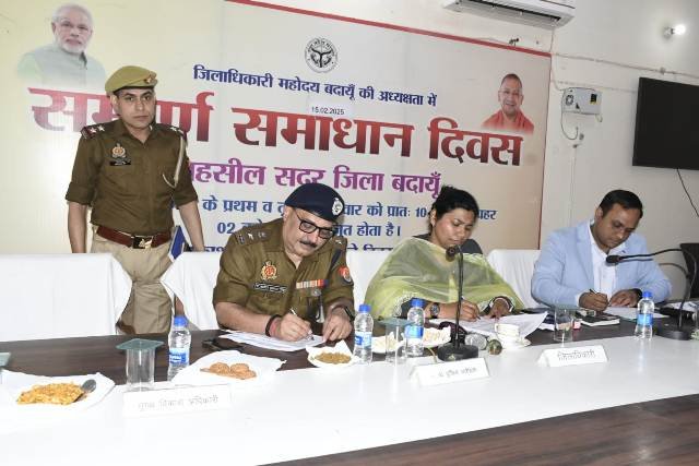 बदायूँ : 15 फरवरी 2025 को तहसील सदर में जिला मजिस्ट्रेट निधि श्रीवास्तव और वरिष्ठ पुलिस अधीक्षक डॉ. बृजेश कुमार सिंह की अध्यक्षता में संपूर्ण समाधान दिवस का आयोजन किया गया। इस अवसर पर जिलाधिकारी और एसएसपी ने खुद उपस्थित होकर शिकायतकर्ताओं की समस्याओं को सुना और मौके पर ही अधिकांश शिकायतों का निस्तारण किया।