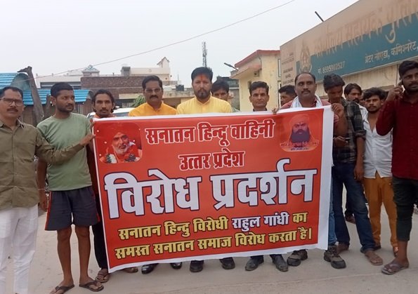 राहुल गांधी के खिलाफ सनातन हिन्दू वाहिनी का विरोध प्रदर्शन, जमकर लगे मुर्दाबाद के नारें