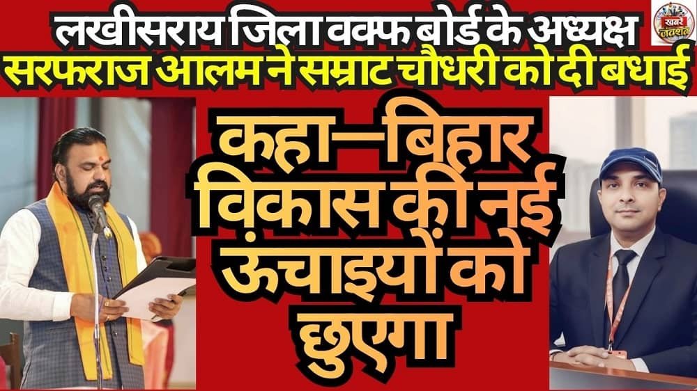 लखीसराय जिला वक्फ बोर्ड के अध्यक्ष सरफराज आलम ने सम्राट चौधरी को दी बधाई,कहा—बिहार विकास की नई ऊंचाइयों को छुएगा