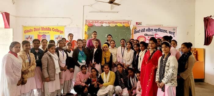 गिन्दो देवी महिला महाविद्यालय बदायूं में आज दिनांक 12/02/2025 को राष्ट्रीय सेवा योजना के “सात दिवसीय विशेष शिविर” का सातवाँ व समापन दिवस प्राचार्या डॉ. इंदु शर्मा के निर्देशन में आयोजित किया गया। शिविर के सातवें दिन की शुरुआत महाविद्यालय की प्राचार्या डॉ. इंदु शर्मा और आज के हमारे मुख्य अतिथि महाविद्यालय के सचिव महोदय ने मां सरस्वती के समक्ष द्वीप प्रज्वलित व पुष्प अर्पित करके किया। छात्राओं के सरस्वती वंदना और स्वागत गीत के द्वारा कार्यक्रम को आगे बढ़ाया गया।