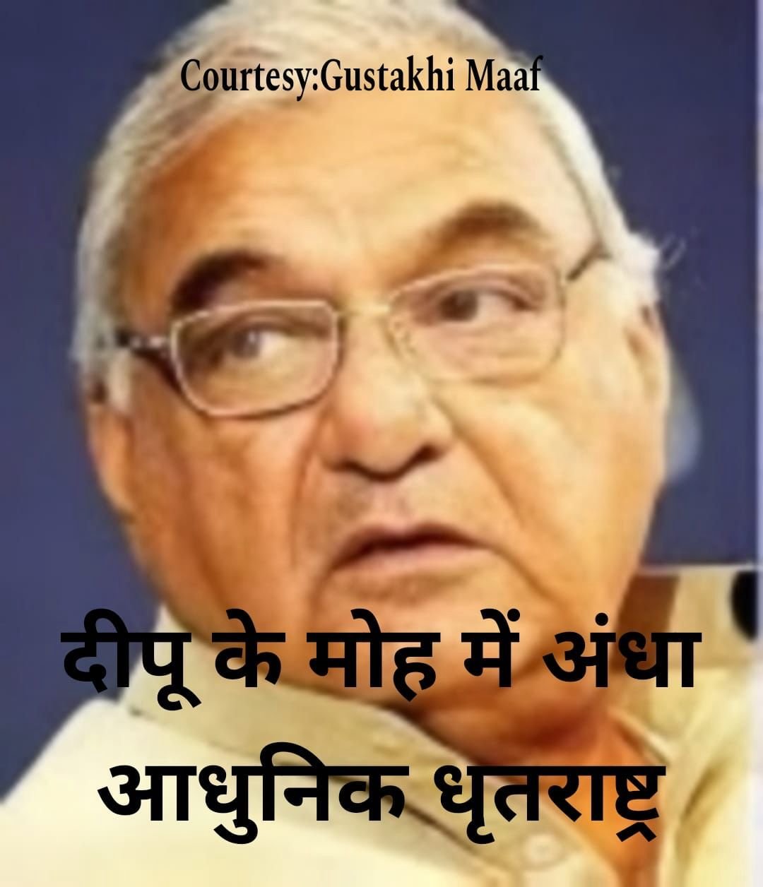 पुत्र मोह में धृतराष्ट्र की तरह अंधे होकर हुडा ने बिगाड़ा खेल- मामला नारनौंद से शैलजा समर्थक डॉक्टर अजय की टिकट काट कर दीपू भगत जस्सी पेटवाड़ को देने का .. शैलजा ने आखिर में अपने समर्थक डॉक्टर अजय के लिए अदद एक टिकट मांगी थी … वो उसकी टिकट की घोषणा भी कर चुकी थी .. अगर हुडा जस्सी की जगह डॉक्टर अजय पर सहमत हो जाता तो मामला आगे नहीं बढ़ता .. लेकिन सी एम बनने के लिए बेचैन दीपू जस्सी जस्सी करता रहा … रही सही कसर जस्सी समर्थक ने शैलजा के बारे अपमानजनक और जातिसूचक शब्दों का प्रयोग करके आग में देशी घी डाल दिया.. अगर डॉक्टर अजय जीत भी जाता तो भी हुडा को क्या फ़र्क पड़ता … अजय राजनीतिक परिवार से है और शरीफ है …