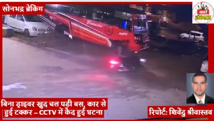 सोनभद्र ब्रेकिंग: बिना ड्राइवर खुद चल पड़ी बस, कार से हुई टक्कर – CCTV में कैद हुई घटना, देखें वीडियों…