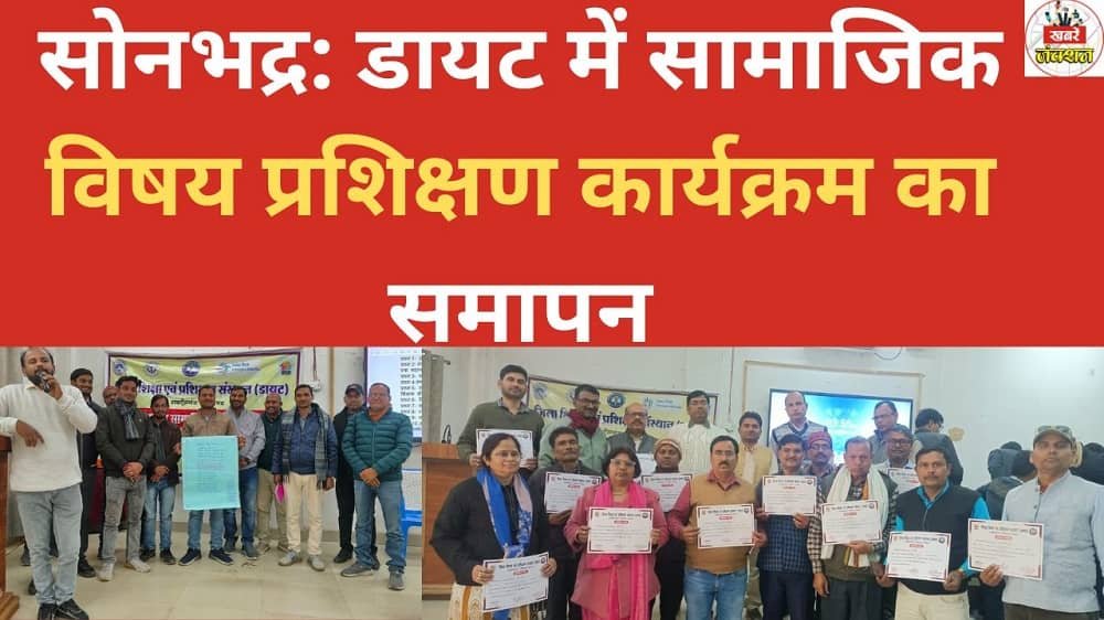 सोनभद्र। जिला शिक्षा एवं प्रशिक्षण संस्थान (डायट), सोनभद्र में सामाजिक विषय से संबंधित प्रशिक्षण कार्यक्रम का समापन सोमवार, 09 फरवरी 2026 को सफलतापूर्वक संपन्न हुआ। यह प्रशिक्षण कार्यक्रम डायट प्राचार्य एवं उप शिक्षा निदेशक मुकुल आनंद पाण्डेय के निर्देशन में आयोजित किया गया।