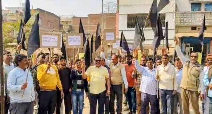 सोनभद्र। विंढमगंज क्षेत्र में ट्रेन के ठहराव और संचालन की मांग को लेकर ग्रामीणों का आक्रोश बुधवार को खुलकर सामने आया। स्थानीय गांधी पार्क में लगभग 12 बजे बड़ी संख्या में ग्रामीण काले झंडे और नारे लिखी तख्तियां लेकर एकत्र हुए। “ट्रेन रुकेगी जब, मतदान होगा तब” जैसे नारों के साथ ग्रामीण सुभाष तिराहा से वीआईपी गली और खानी मार्केट होते हुए गांधी पार्क पहुंचे, जहां जोरदार विरोध प्रदर्शन किया गया।