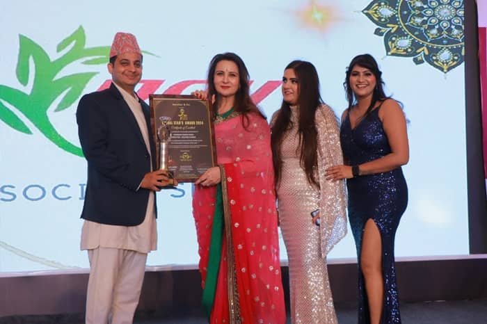 सोनित राज ढुंगेल को ग्लोबल स्टार्स अवार्ड 2024 में बॉलीवुड अभिनेत्री पूनम ढिल्लों द्वारा सम्मानित किया गया