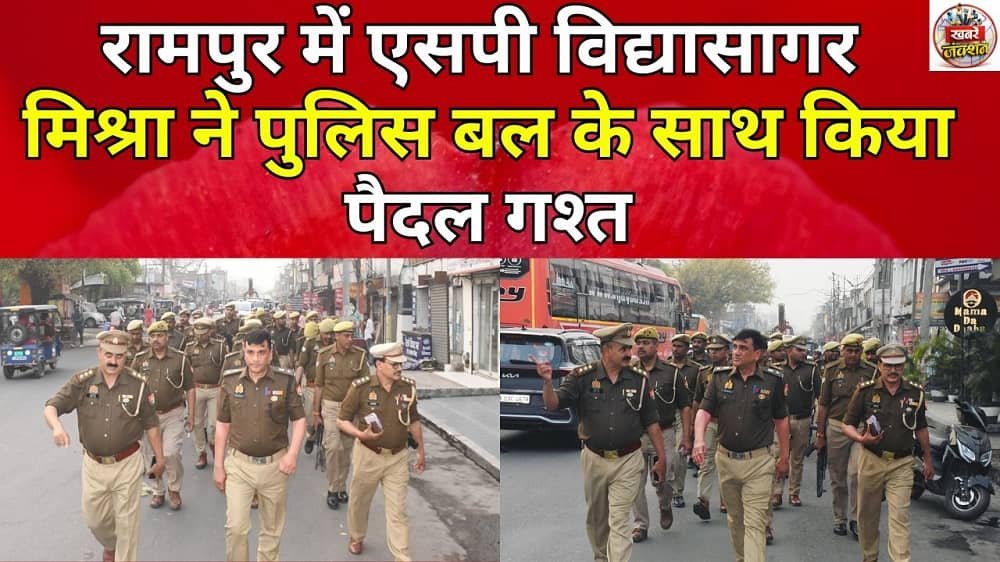 रामपुर। जनपद में अपराध नियंत्रण, कानून-व्यवस्था को सुदृढ़ बनाए रखने तथा आमजन में सुरक्षा की भावना को मजबूत करने के उद्देश्य से पुलिस अधीक्षक विद्यासागर मिश्रा ने नगर क्षेत्र के थाना सिविल लाइन इलाके में पुलिस बल के साथ पैदल गश्त की।