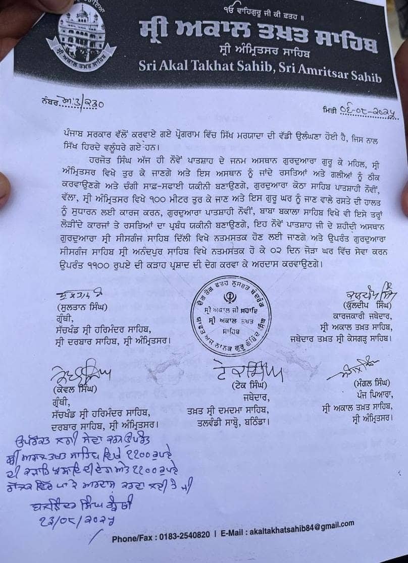 उन्होंने स्पष्ट किया कि 6 अगस्त को मिला श्री अकाल तख्त साहिब का आदेश उनके लिए पिता समान गुरु का हुक्म था, जिसे उन्होंने पूरी निष्ठा से निभाया। सेवा पूरी करने के बाद उन्होंने गुरु साहिब से पंथ, कौम, देश और पंजाब की सेवा का बल देने की अरदास की।