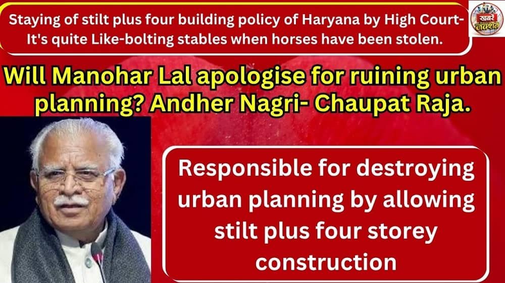 Staying of stilt plus four building policy of Haryana by High Court- It’s quite Like-bolting stables when horses have been stolen. Will Manohar Lal apologise for ruining urban planning?Andher Nagri- Chaupat Raja.’