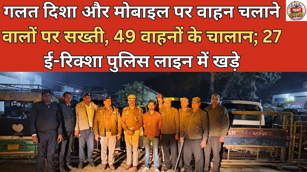 गलत दिशा और मोबाइल पर वाहन चलाने वालों पर सख्ती, 49 वाहनों के चालान; 27 ई-रिक्शा पुलिस लाइन में खड़े