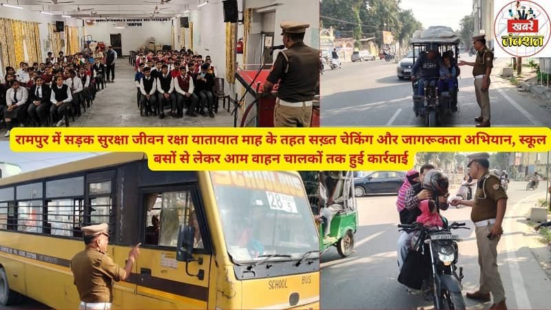 रामपुर में सड़क सुरक्षा जीवन रक्षा यातायात माह के तहत सख़्त चेकिंग और जागरूकता अभियान