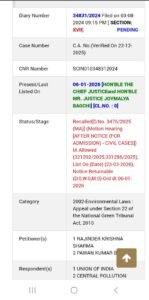 We have challenged it and prayed that above land be restored to Forest department Haryana .Aggrieved by the final order dated 11.07 .2024 of National Green Tribunal Principal Bench dismissing the writ Civil appeal was filed in Supreme Court against the judgement of NGT.On Tuesday Division bench of the Supreme Court consisting of Chief Justice Surya Kant and Justice Joymalya Bagchhi heard the case and issued notice to Union of Indian and Central Pollution Control Board returnable on 23.03.2026.The petitioners appeared in person.