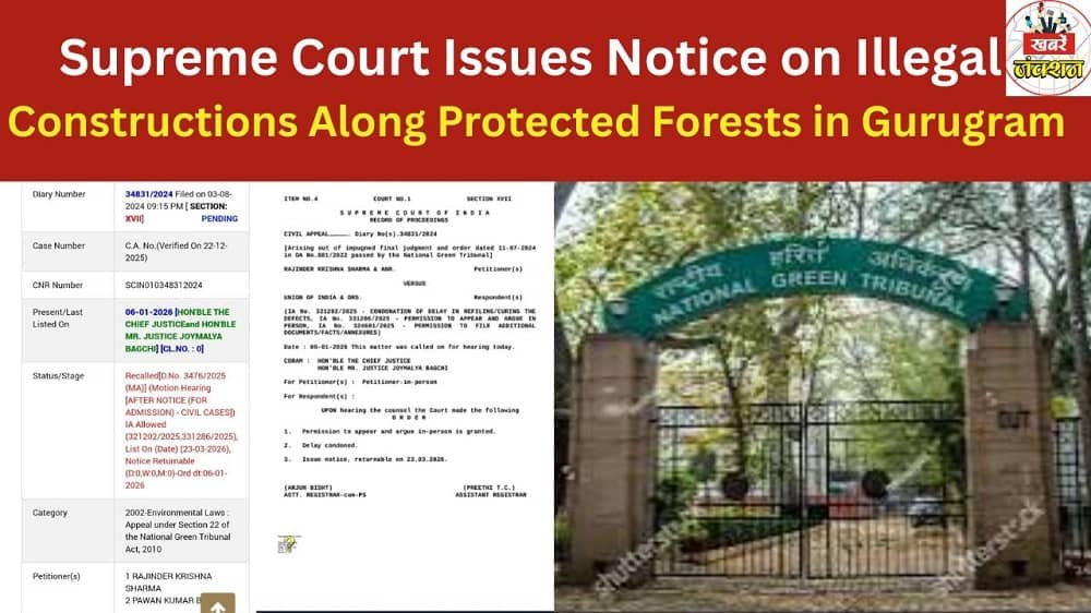 Supreme Court issued notice to Union Govt and others in writ filed by Retired IFS officer R K Sharma and Journalist and social worker Pawan Kumar Bansal. Illegal commercial constructions by Ambience Ltd along notified Protected Forests of Sikandarpur and Nathupur Bundh Gurugam.
